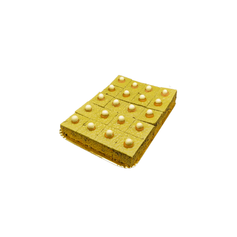 Plancha Premium San Marcos es un dulce gourmet en bandejas de 20 porciones, inspirado en la tarta San Marcos tradicional con bizcocho genovés, crema de yemas y nata montada, coronado con yema cremosa encima.