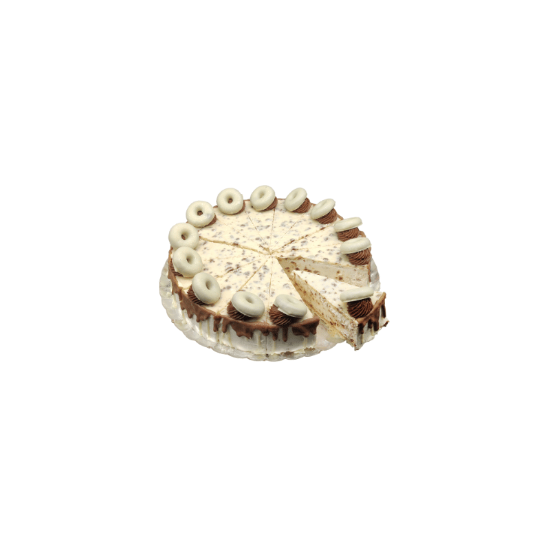 La tarta de chocolate blanco y Filipinos porcionada ofrece mousse sedosa de chocolate blanco salpicada de Filipinos troceados sobre base de galleta, dividida en 14 porciones listas para eventos o vitrina con decoración de galletas en superficie. Cada ración entrega el contraste perfecto entre cremosidad y crunch nostálgico, ideal para servicio rápido y porciones controladas. Versión práctica que conserva el lujo goloso original.