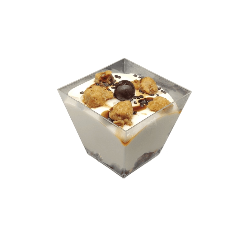 Servida en vaso de cristal que deja ver el helado y las nueces, es ideal para vitrina premium o postre de carta, ofreciendo un contraste perfecto entre cremosidad intensa y fruto seco de alta gama.