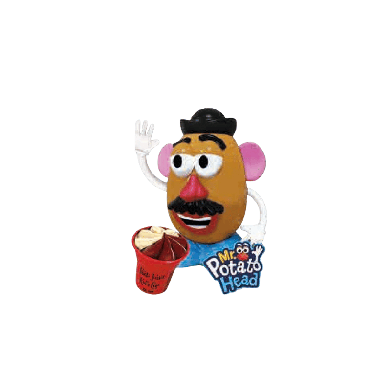 Helado Mr. Potato presenta forma juguetona de Mr. Potato con tarrina interna de helado suave vainilla y chocolate a base de leche, perfecto para manos pequeñas y consumo rápido al aire libre .