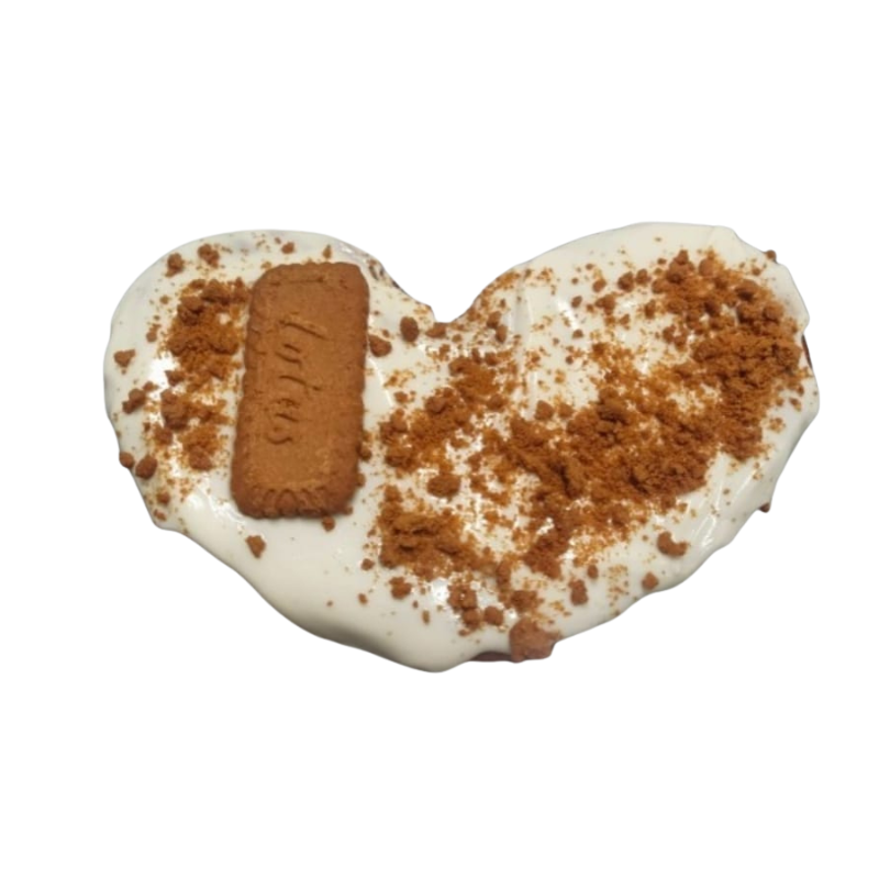 La Palmera rellena Lotus elabora hojaldre dorado y hojaldrado que envuelve generosa crema Lotus original con notas caramelizadas, rematada con fina capa de chocolate blanco y fragmentos crujientes de galleta Lotus para contraste textural irresistible .