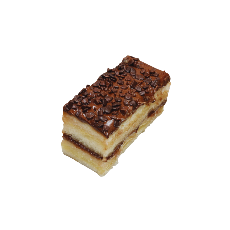 El Dulce Chocokinder combina bizcocho suave con generosas capas de crema Kinder cremosa junto a crema de chocolate puro, rematado por escamas brillantes de dos chocolates que aportan contraste textural adictivo y sabor Kinder auténtico .