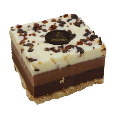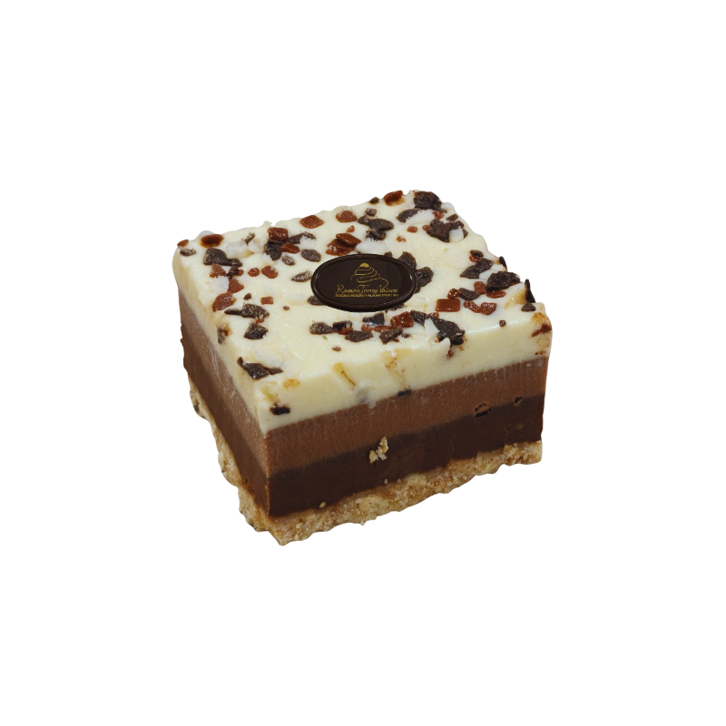 Tarta Tres Chocolates es una tarta espectacular de tres chocolates distintos con base crujiente de galleta, generosas capas de chocolate intenso y decorada con escamas de tres chocolates para contraste visual y textural irresistible.
