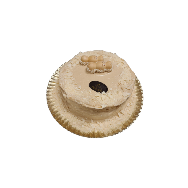 Tarta Yema es un producto típico de nuestra tierra rellena de bizcocho negro y blanco alternados con capas generosas de yema cremosa y trufa sedosa, adornada con conchas de chocolate, crocanti crujiente y cordones elegantes de trufa.