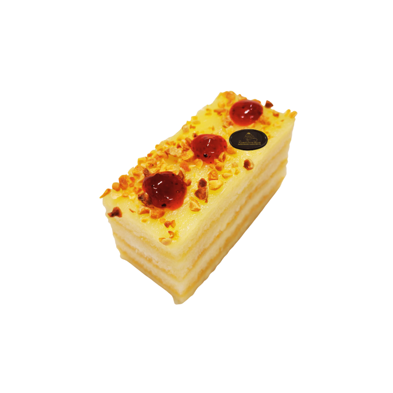 Dulce Semáforo es un dulce colorido con bizcocho esponjoso, cremosa crema pastelera casera y decoración vibrante de guindas de fresa jugosas junto a granillo de almendra crujiente.