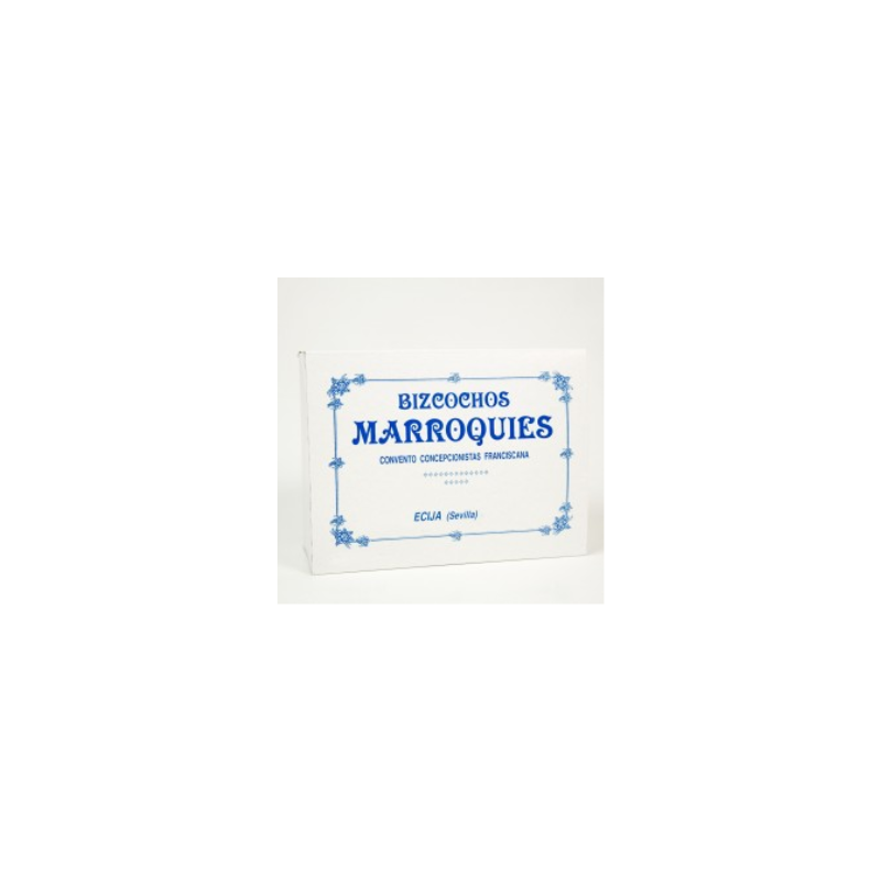 Bizcochos marroquíes conventuales típicos de Écija, elaborados artesanalmente con huevo, azúcar y almidón de trigo. Sin lactosa y con una textura aérea única. Presentación en cajas de 6 unidades, ideales para venta al por mayor y profesionales de la pastelería.