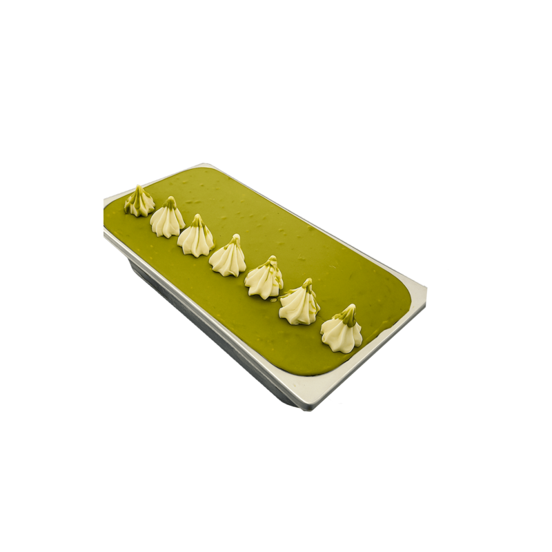 El Granel de Chocolate Blanco con Cremino de Pistacho une la suavidad del chocolate blanco con la intensidad del pistacho italiano en una mezcla cremosa y delicadamente aromática. El helado combina una base dulce y aterciopelada con vetas de cremino de pistacho —una crema fina elaborada con pasta de pistacho natural— que aportan un contraste perfecto de color y sabor. Ideal para quienes buscan un postre refinado pero agradable para todos los públicos, este helado artesanal destaca tanto en vitrinas profesionales como en envases para disfrutar en casa.