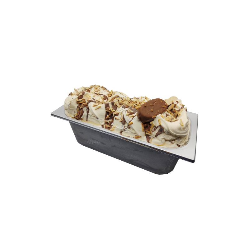 El Granel Luxxus recrea placer de bombón almendrado con helado sedoso de praliné avellana, trozos almendra y capa crujiente exterior en cada porción. Beige elegante con frutos en vitrina, ideal solo para indulgencia o con café. Exclusivo para momentos premium, evocando lujo helado.